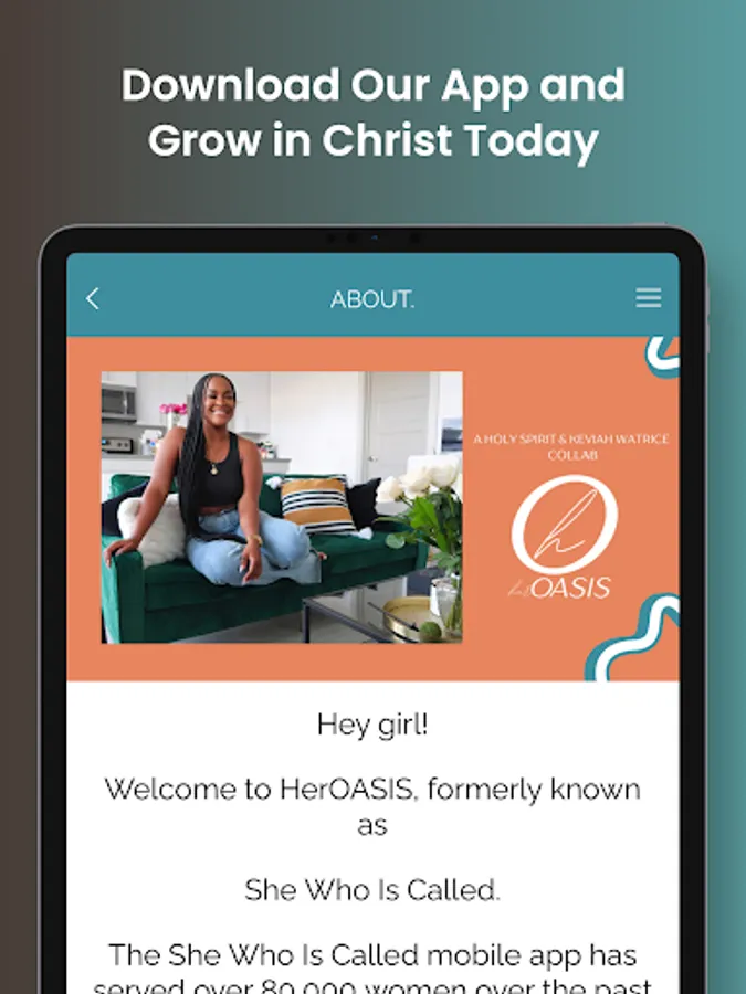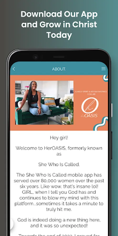 Welcome to the HerOASIS mobile app, formerly known as “She Who Is Called”.