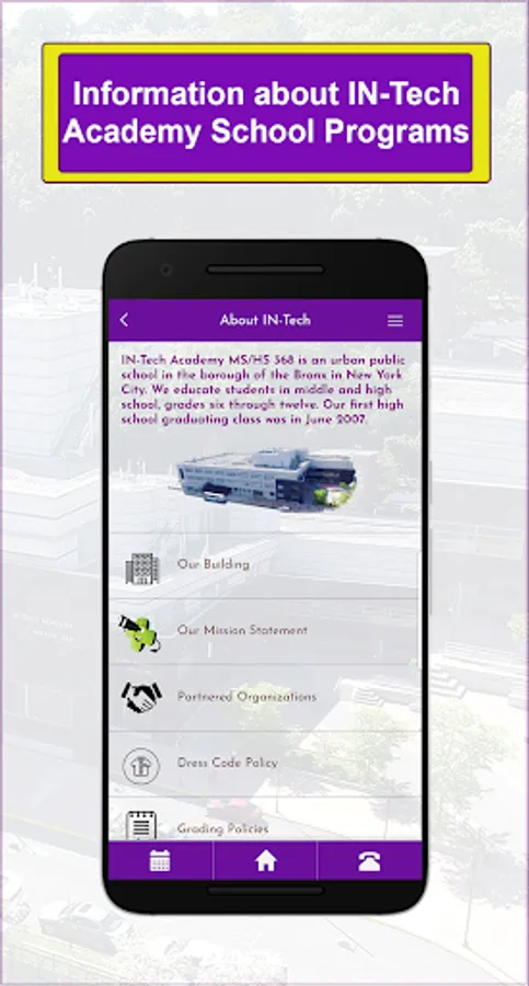 The IN-Tech Academy App is a mobile communication, information, and academic resource center for students and parents of IN-Tech Academy MS/HS 368 in Bronx, NY. The app is designed to keep students, parents and members of the IN-Tech community informed and up-to-date with school activities, test scheduling, bell schedules and a variety of other resources to help maximize your academic experience. You can order school uniforms at our School Web Store, and pay for Senior Class dues through the app. We have customized Push Notifications to enhance communications between school administration, teachers, parents and students. Students can also report an absence or lateness with one click in our Faculty Directory. We’ve also linked other valuable digital media to help support students and parents with core classes and Regents testing.