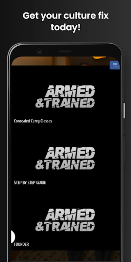 Welcome to Armed & Trained. Formerly known as The "4 The Culture" App is something revolutionary! This App is providing concealed carry classes, also cultural information from the past, present and future for African Americans. Having access to legendary speeches and documents, historic videos, conscious books, and other contents that can help you become more aware of your heritage. It also focuses on Mental Health in the black community and spiritual growth.