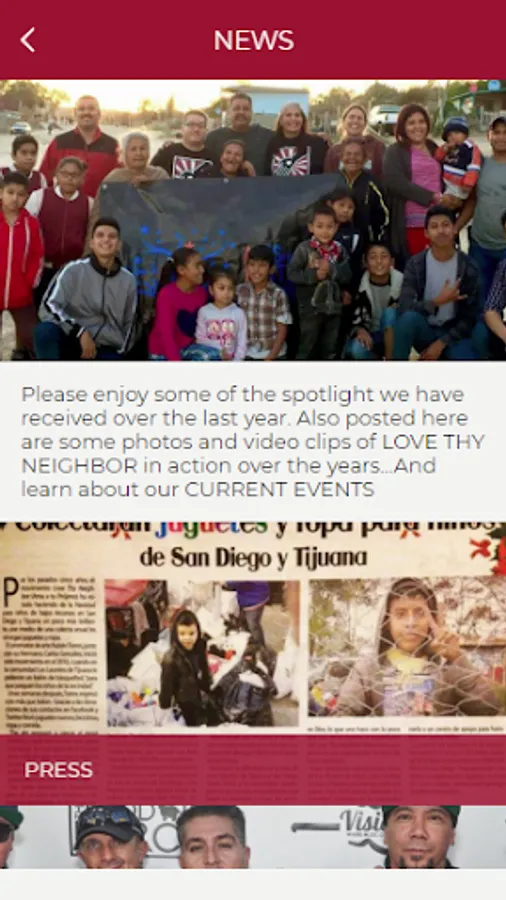 Love Thy Neighbor Movement App to connect with community, volunteers & staff. Offer weekly and monthly event annoucements. Features includes social wall, organization info, staff info, facebook and push notifications.