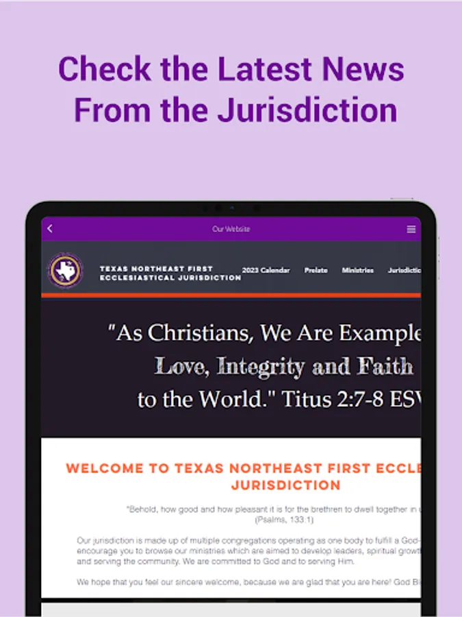 Welcome to the Texas Northeast First Ecclesiastical Jurisdiction app! Stay connected with us and receive notifications about events and services at Texas Northeast First.