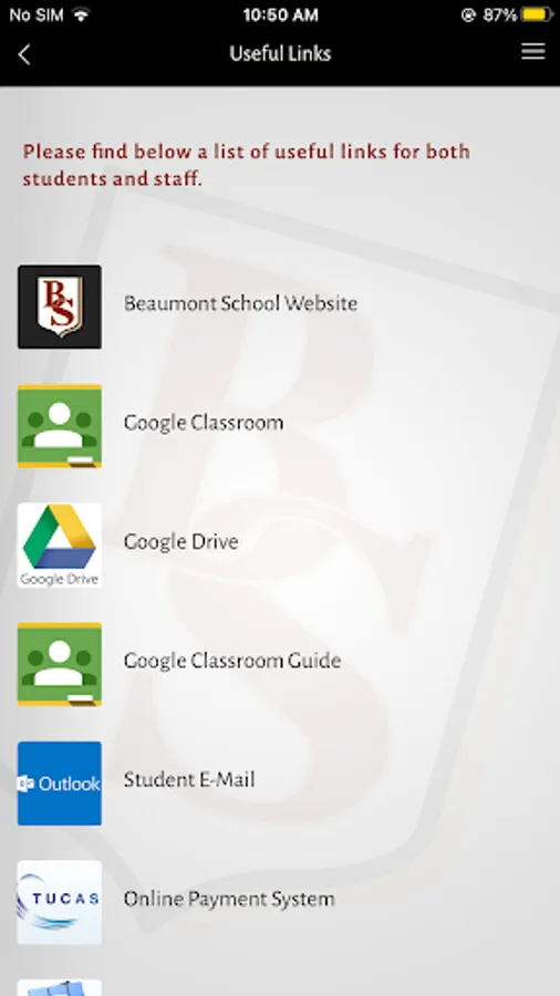 Beaumont School are proud to present the official mobile app, keeping parents in touch with the school through latest news feeds, calendar, term dates and push notifications which allows us to send you short messages reminding you of key dates and events. Additionally we can now inform you of incidents such as snow days and closures without you having to check first on the website.