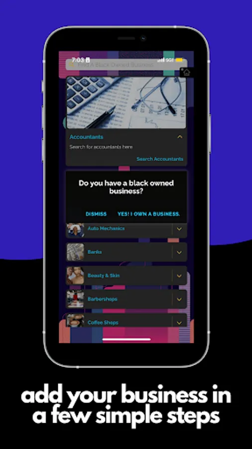 - Business Owners: The Official Black App is the perfect tool to promote your business to over 40,000, and growing, customers who are searching for black owned businesses to support every single day! Listing your business on our platform is very easy. Download the app today and tap "List Your Business", then complete this business questionnaire and select which listing you would prefer and sit-back and watch the customers come to you!