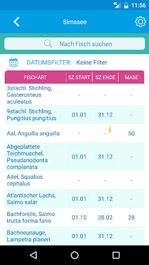 - What just spared? Display currently geschonter fish species in your district and your waters! No more lengthy searches!