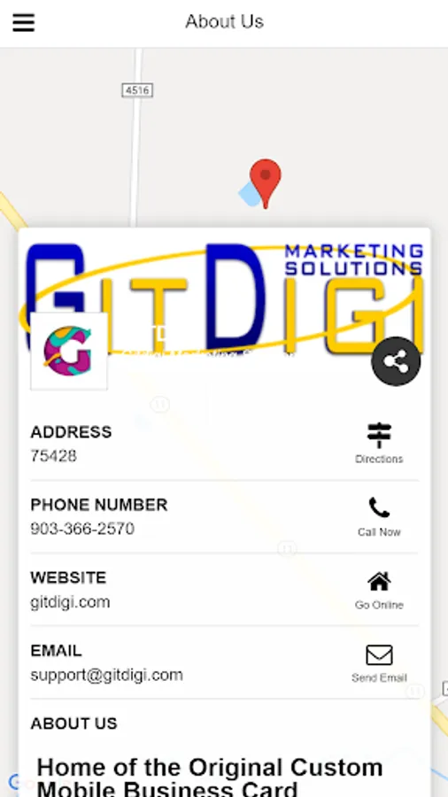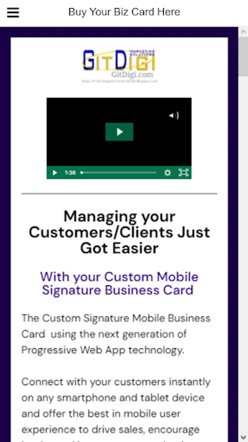 Gitdigi Mobile Solutions created the "Custom Mobile Business Card" with you in mind. We understand the importance of lead acquisition and the ability for your potential new clients to contact you immediately. Our “Custom Mobile Business Cards do just that! Powerful marketing features coupled with your clients ability to share not only “Socially but Virally via SMS” can explode your business, bringing you in new customers daily!