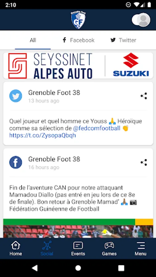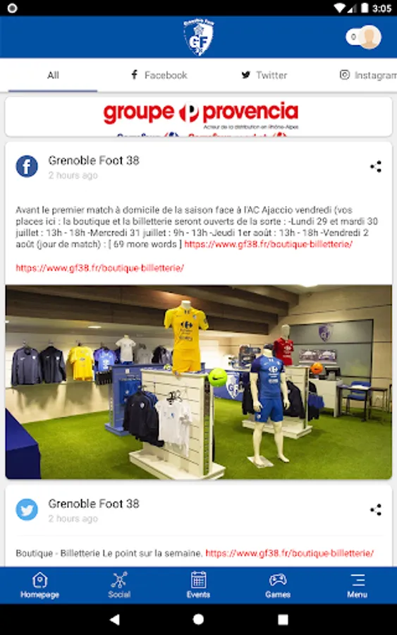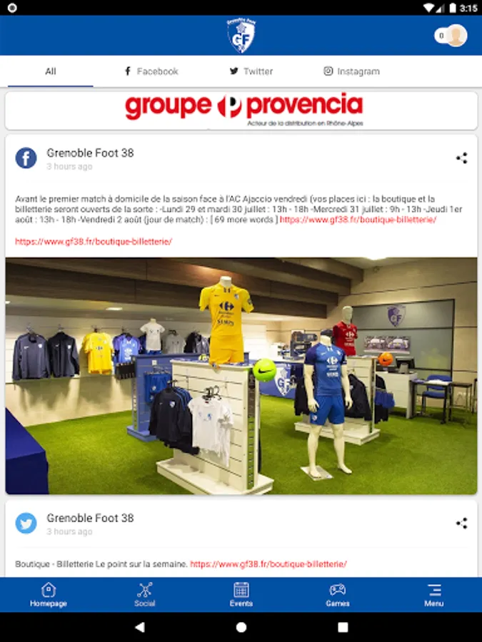 - Les posts sociaux, TOUS accessibles au meme endroit (Facebook, Twitter)