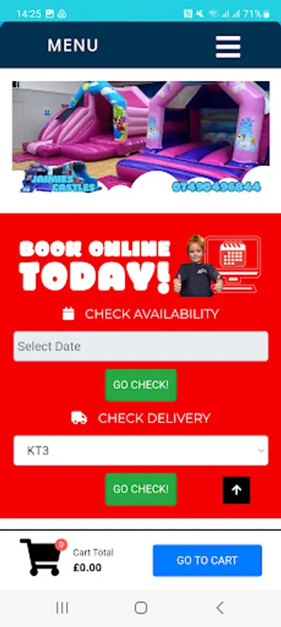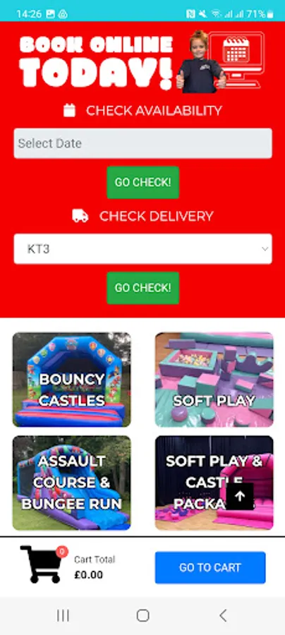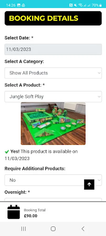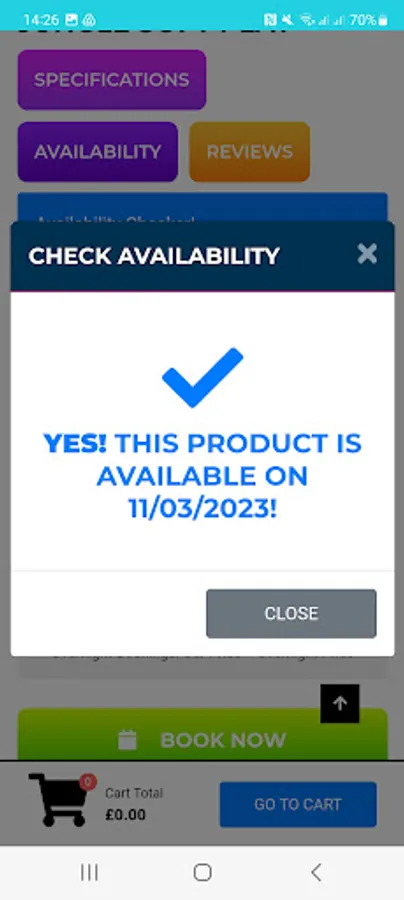 Everything can be booked direct on our app via our live built in booking system, which can show you what's available on the date you wish to hire.