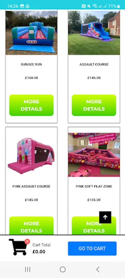We have a variety of party equipment to suit everyone like our themed bouncy castles , giant games, slides, assault course and our large selection of soft play. We hope you will find something to make your day extra special.