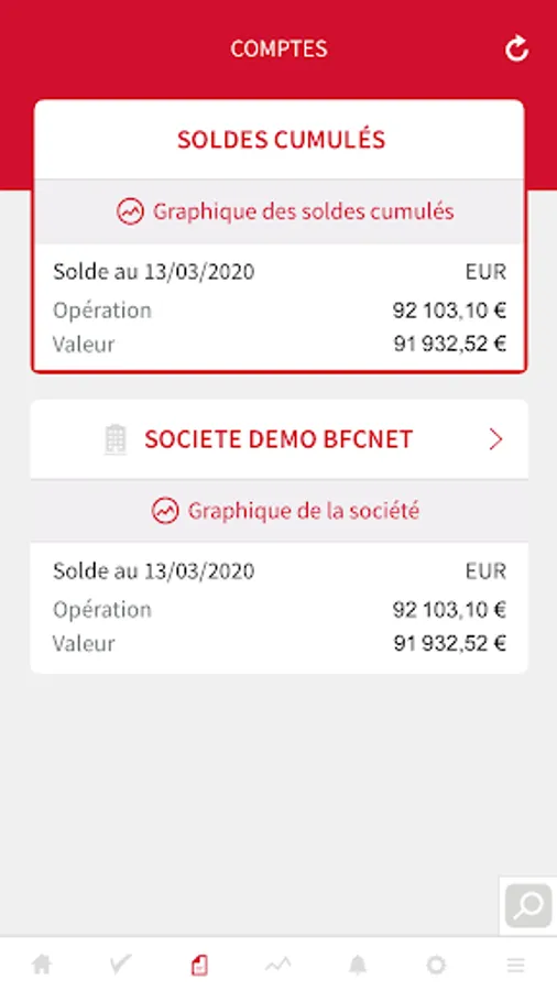 The mobile application (IOS / Android) Extension of BFC NET ENTREPRISE allows to offer to the directors of the company, or to the administrators delegated by the latter, an interface adapted to a use on their smartphone. The functions available in the mobile application are: