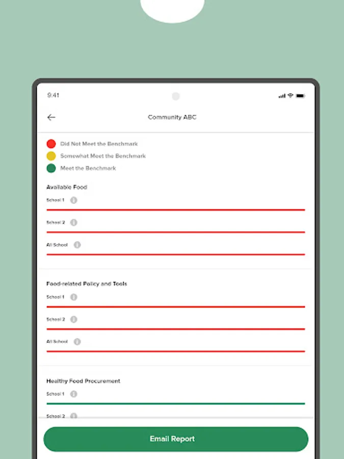 community is doing compared to benchmarks for a healthy food environment.