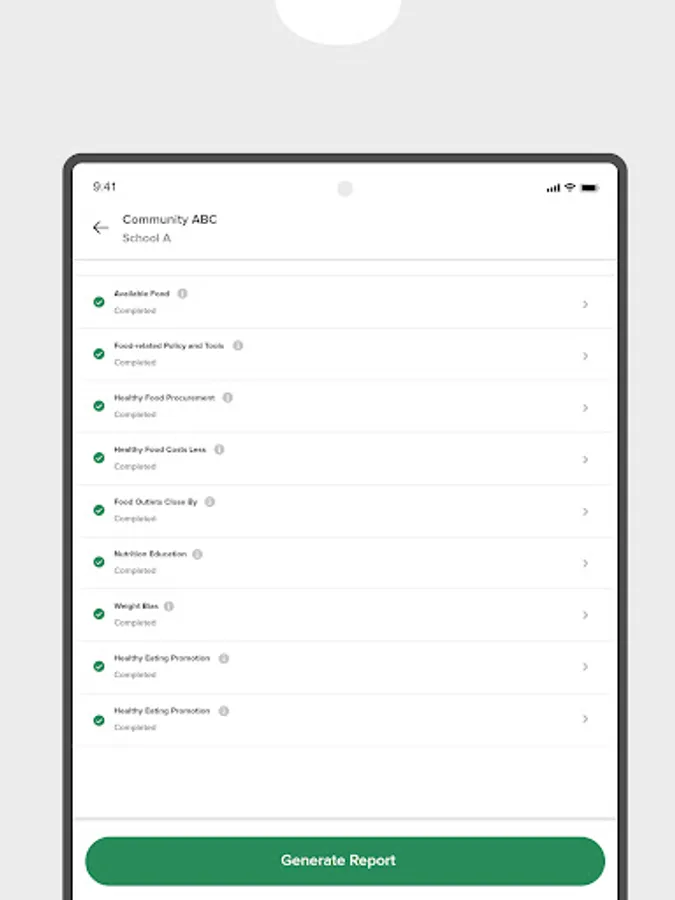 what people eat. Collect local data and create a Community Nutrition Report Card,