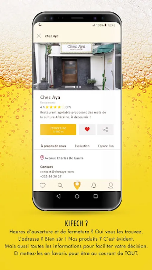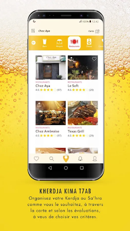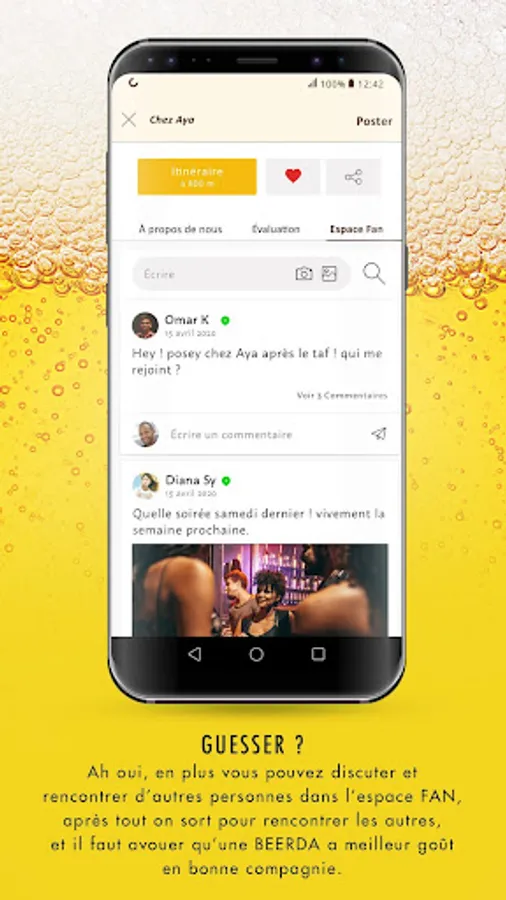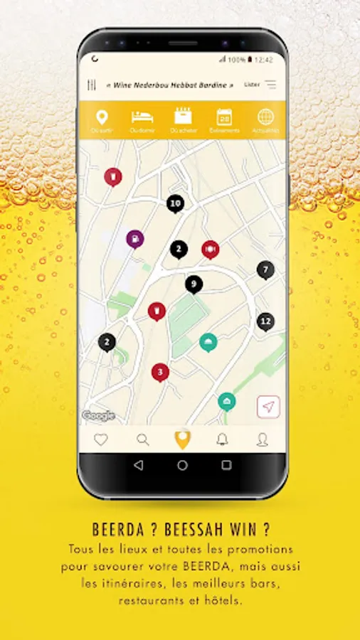 BEERDA the essential mobile application to enjoy a good cold beer by activating its geolocation and find bars, restaurants, nearby sales outlets as well as events that occur in the surroundings. A good plan for a Beerda, this application is for you! Beerda allows you to locate the places where you can taste the whole range of products: Beaufort, 33 export, Castel Beer, Beck's, Stella Artois, and Bavarian. BEERDA will allow you to have the details on the actions made in the sales depots in the perimeter where you are, to have access to events and sports competitions in the bars around which will give you the possibility to taste your favorite beers. And many more....