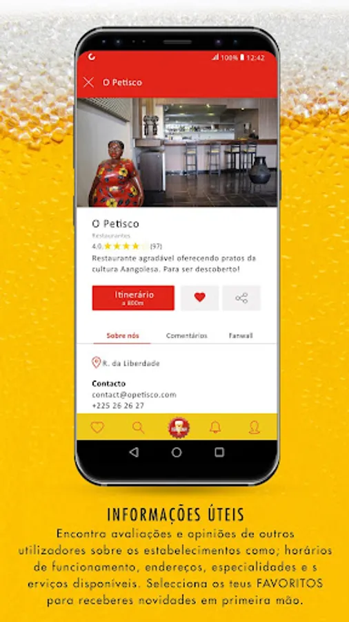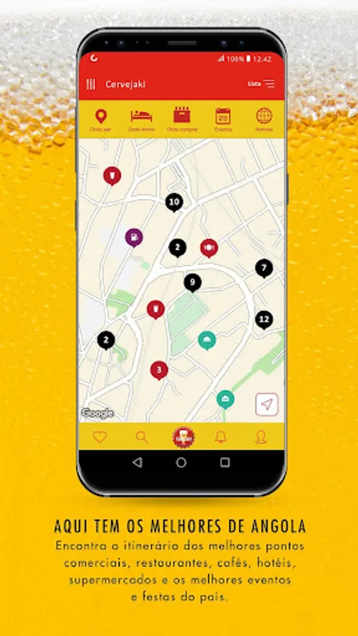 Cervejaki is a mobile application that allows any user to locate a variety of commercial points such as; restaurants, cafes, hotels, pastry shops, nightclubs, hypermarkets, supermarkets, open windows, wholesale POS, for purchase or consumption of the best brands of beers, soft drinks and juices in Angola, you will also find cultural agenda, promotions, brand launch campaign .