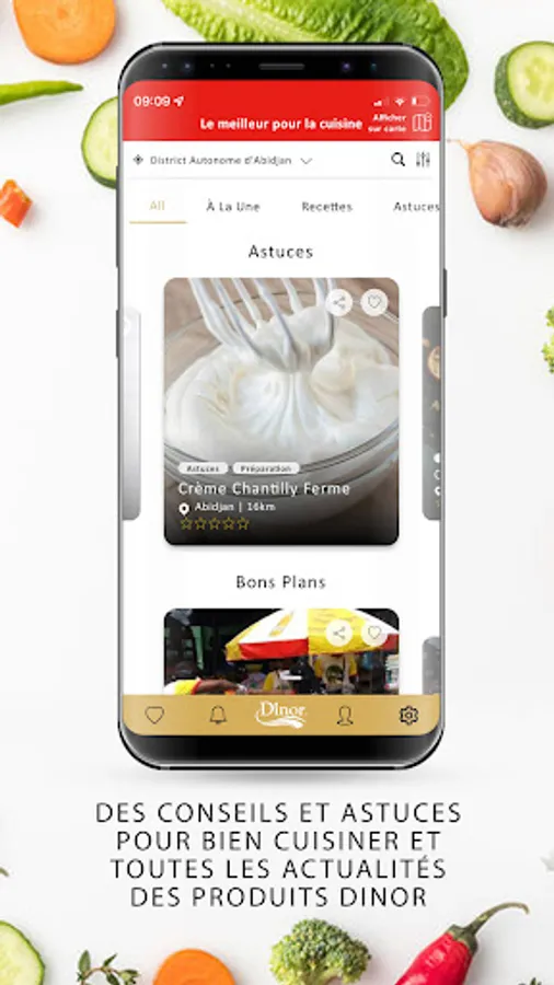 With the DINOR App, take to your stove and explore the most original recipes from Côte d'Ivoire, Africa and the world.
