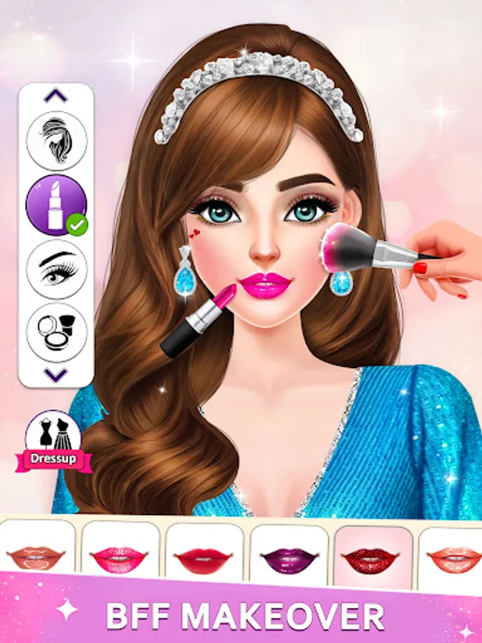 Makeup Artists play realistic makeup games to become BFFs fashion stylist in girl dress up games and fashion show games. BFF Games allows you to learn how to dress up girls. Fashion games for Teens to learn dress up fashion in fun free games for teen girls. fashion models love to play BFF fashion dress up games to learn makeup and dress up skills so that she got a spotlight in every bff dress up function. In the domain of fashion games, beauty games and styling games this is the most beautiful dress up game in 2020 where you learn new beauty trends in this girls makeup beauty game.
