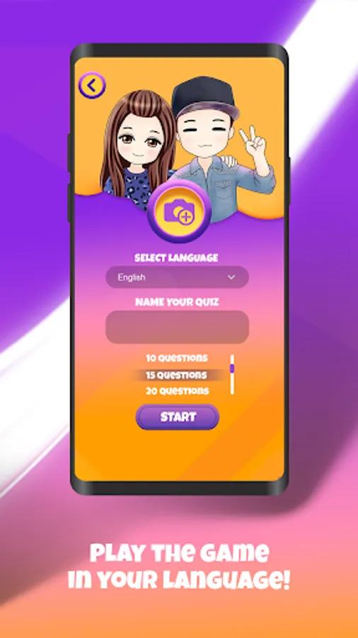 1. Start the friendship quiz app, name the test, add an image and choose the number of questions.