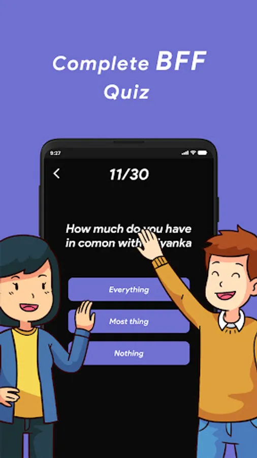 Install the BFF-Know Your Best Friend App with fun friendship quizzes, check your friendship bond, compatibility and share with friends to celebrate the friendship with your buddies.