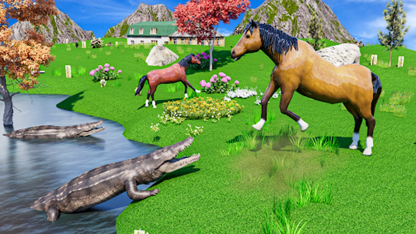 As you grow a family, explore the jungle in horse simulator games in search of food and water, and defend the family from hazardous predators there, feel the excitement of the stable horse in horse craft games or the wild animal in wild horse games. In this virtual horse family simulator, you may take part in exciting horse family survival activities like feeding a young horse baby in the wilderness and saving the family from predators in games set in a wildlife park. Use a flying horse simulator, a realistic animal simulator of a horse survival simulator, or both to protect your herd of horses and raise your horse family while having endless family fun.