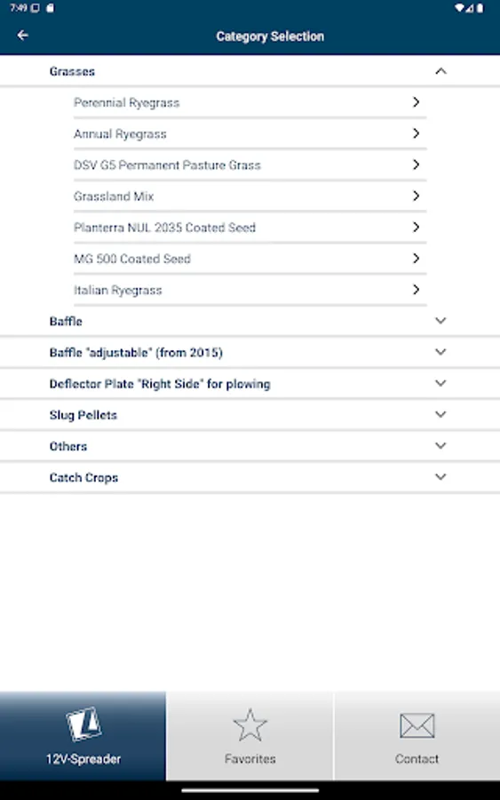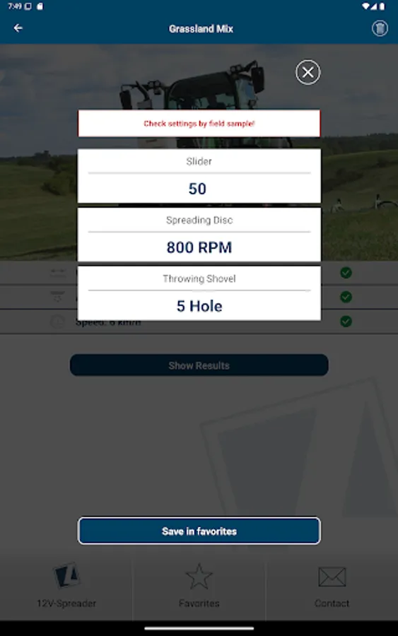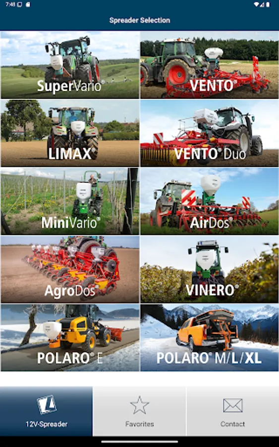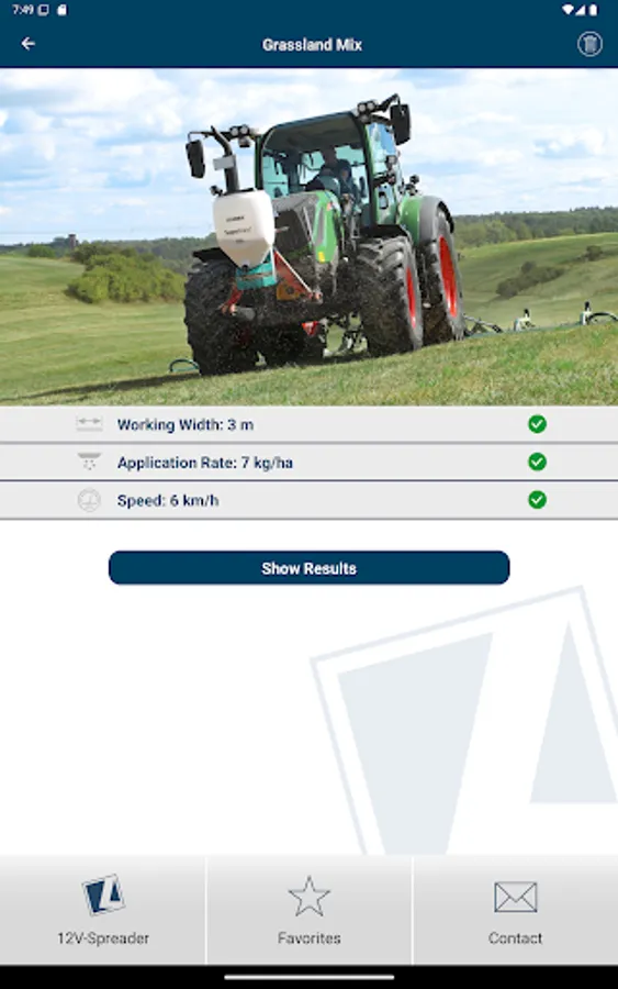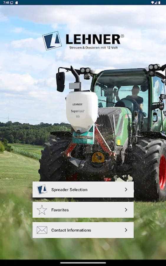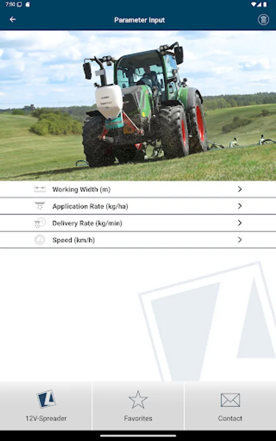 You simply select the respective spreader in the app and can then decide between the value determination via spreading material calculator or spreading material selection. Then enter the desired parameters, such as application rate, working width and speed, and you will immediately be shown the necessary setting values for your LEHNER spreader. Of course, you can also add this overview directly to your favorites and call it up again in the future without having to enter/calculate it again.