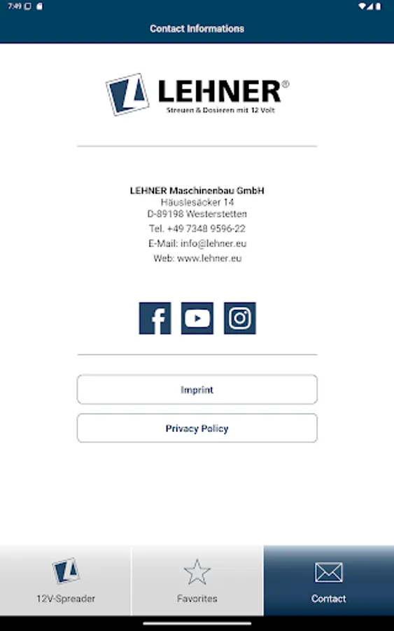 The LEHNER spreading app is available in two languages - German and English.
