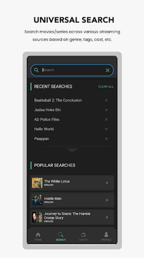 Series/Movies from various OTT sources are aggregated in one place, and personalized recommendations based on preference are given by both AI-driven and manual curation.