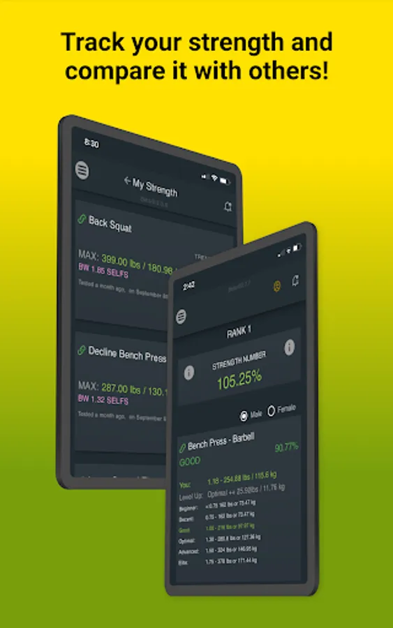 See how your body responds to workouts and exercises by tracking your strength and 1RMs, your workout volume, and activities (running, rowing, etc.).