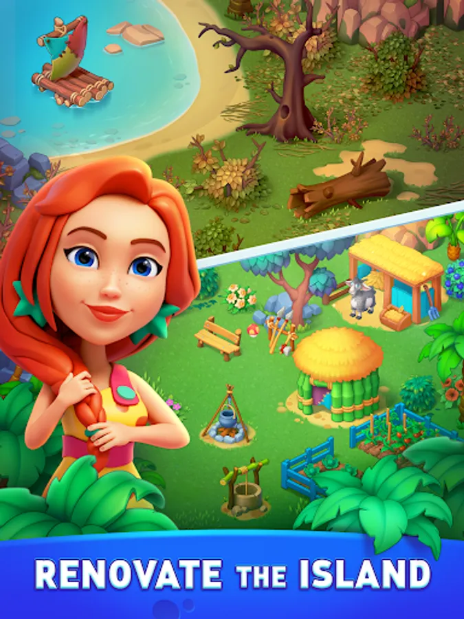 Avoid boring pastimes in a brain training game and get acquainted with our characters in an entertaining gameplay. Clear the island of thickets and debris. Set up a cozy nest for the heroes on a deserted island. Create a true tropical home. Help them grow food, give them the tools they need to survive, and build a piece of paradise!