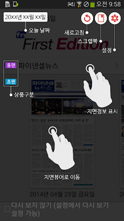 The Financial News digital first edition service is a digital newspaper paper service that is issued around 6:30 a.m. on the day before the newspaper is published. It is a financial news newspaper that can be quickly accessed through digital devices such as PCs, smartphones, and tablet PCs.