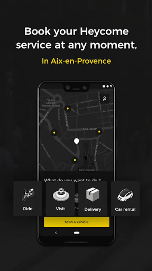 Heycome is an application that puts customers in contact with drivers who provide transportation, tourism and delivery services in the heart of downtown Aix-en-Provence, thanks to electrically-assisted bikes.
