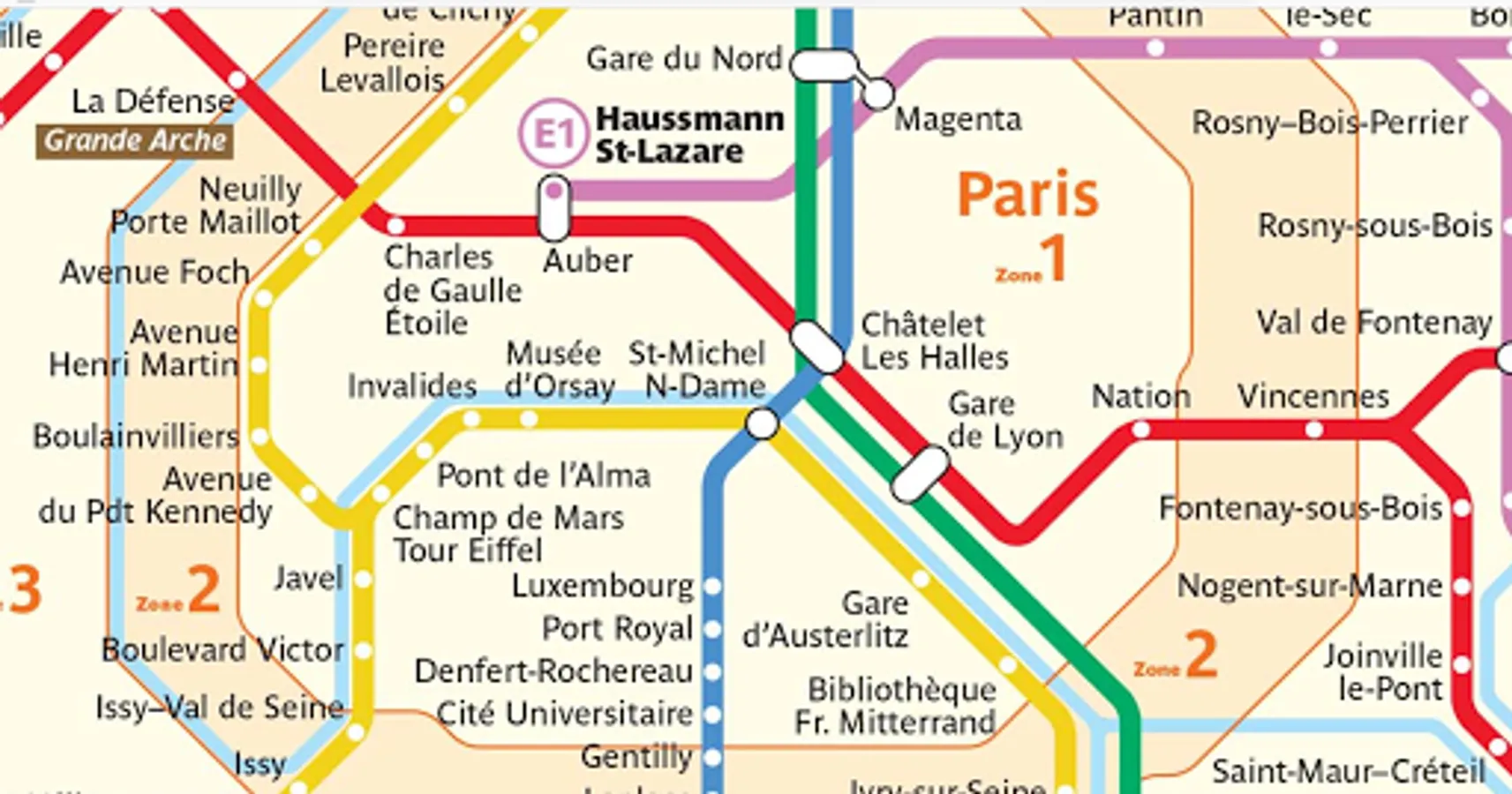RER E Map : Haussmann St Lazare – Chelles Gournay / Tournan