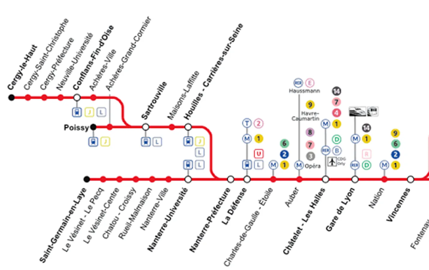 RER A Map : Cergy Le Haut / Poissy / Saint Germain en Laye – Marne la Vallée Chessy / Boissy St Léger