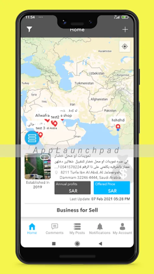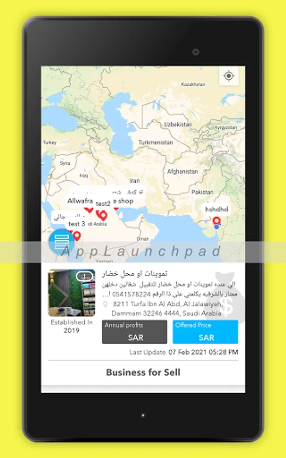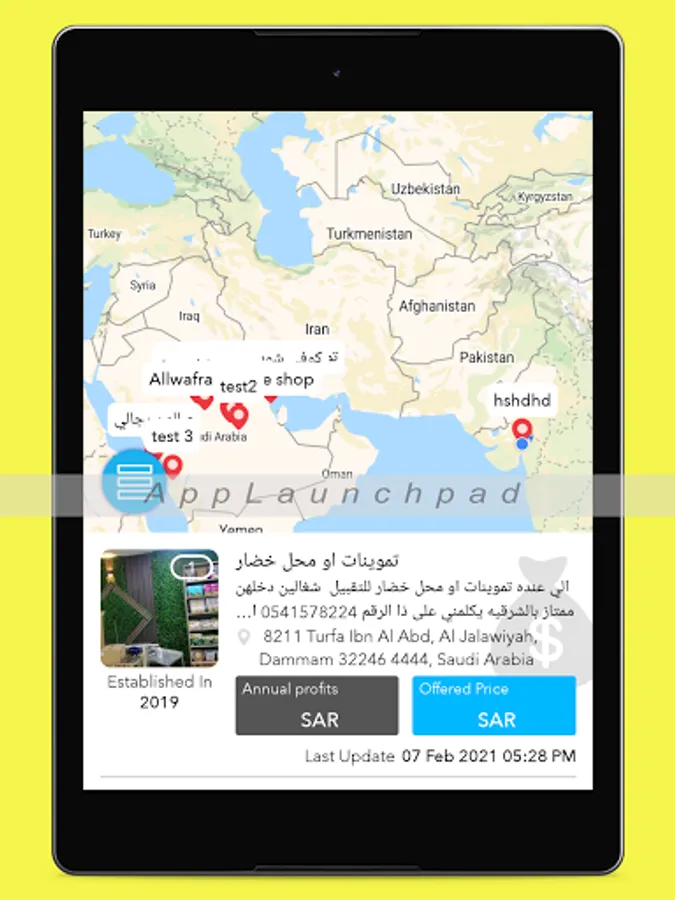 Also, you can search for the appropriate location to start your project, and through the Wafra app, you will find all the appropriate locations for the project by searching on the map. Where you can see all the shops offered to kiss, rent or sell.