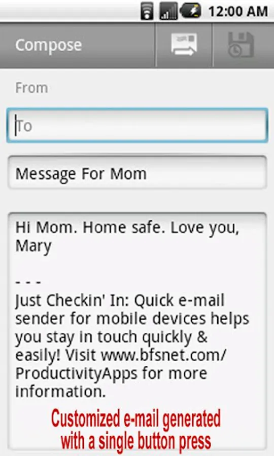 * Super quick! Super easy! Just one button to generate e-mail! +