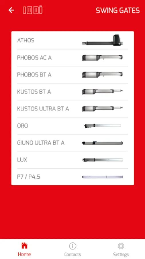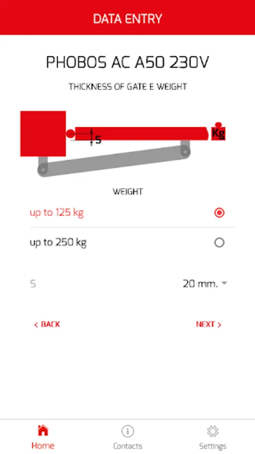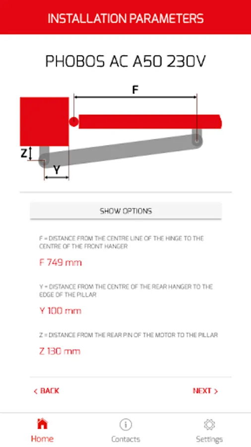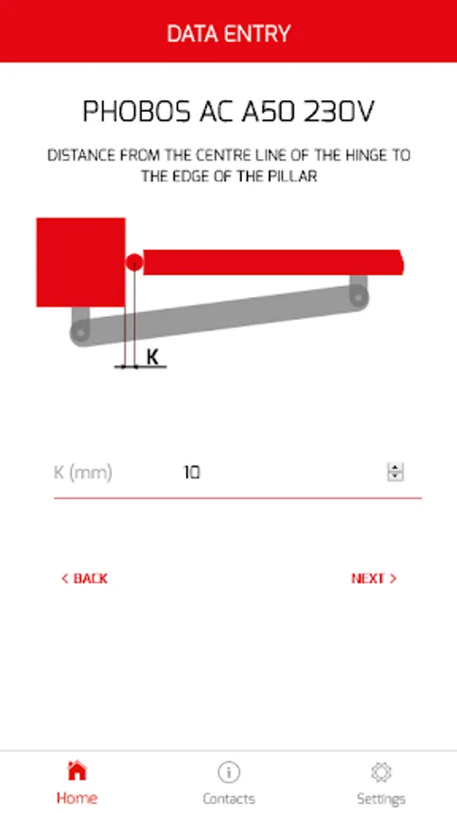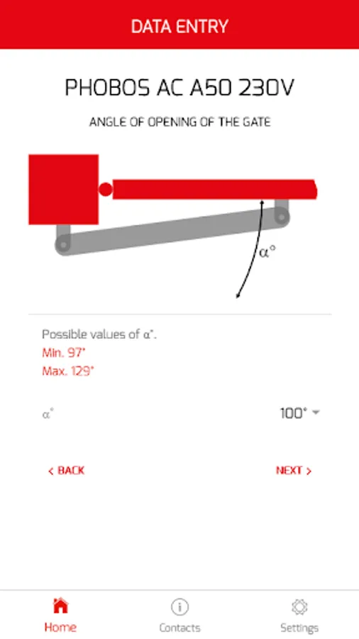 The application supports and facilitates the installation of BFT swing gate motors. It automatically calculates the correct installation height for the motor brackets based on installation site measurements and the desired angle of opening.