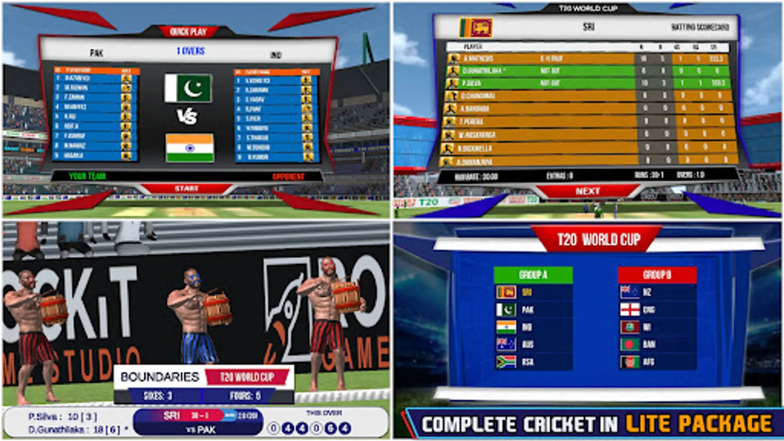 Play t20 matches, the world t20 cup, test match game and more in a lite package but complete circket game!