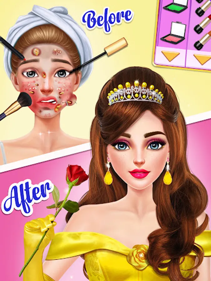 If you like to play makeover princess makeup games, DIY makeup Games, and then this Magical princess dress up Game is for you in girl games. As a girls fashion stylist and makeup artist in princess makeup games try different looks for a supermodel in your girls beauty salon so you find the look in Our dress up Games for girls, as dress designers offer dressing styles for fashion models. Try beauty salon and make up skills on your model try different virtual makeup, dress up and virtual makeover to satisfy your client. Meanwhile with our makeup asmr tricks in our gameplay you will find satisfying feelings and Style your girls with perfect make-up salon look after playing this makeup and dress up games for girls.