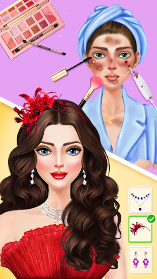 In prom night fashion week play this fashion show game and upgrade your makeover salon in this covet fashion dress up games for girls. Build your makeover studio after playing makeup games for girls. As you complete all the levels of this make up game you'll become the famous fashion dress up game player. In makeup salon fashion girls spend their time by playing this DIY makeup simulator game and satisfying herself with ASMR sound and ASMR gameplay of this makeup and makeover ASMR games for girls.