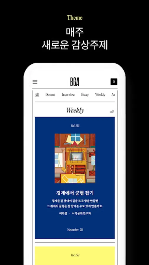 BGA selects one artist every week and introduces one work a day from Monday to Friday.