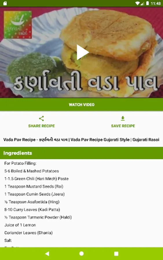 You can enjoy easy to make vegetarian recipes in Gujarati in our Gujarati Rasoi app. Gujarati Rasoi contains Gujarati recipes like Khandvi, Mahakali Sev Usal of Vadodara, Gujarati Dal, Gujarati Kadhi, Dal Dhokli and many more recipes.