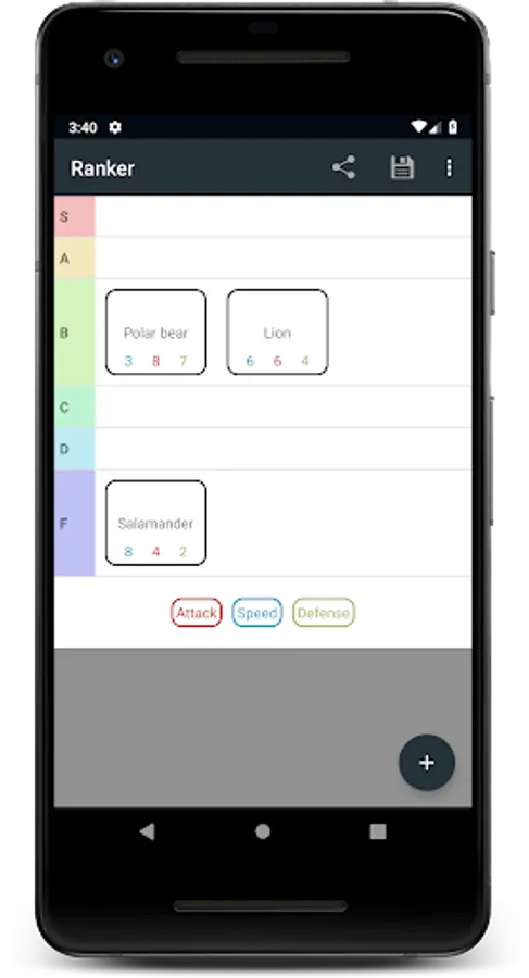 Ranker is an app to make tier lists about anything you want. With the app you can add metrics to help place your items, store lists locally on your device, and share them with your friends! It's text based rather than image based so you can edit tier lists without internet access and your options are not limited to default photos.