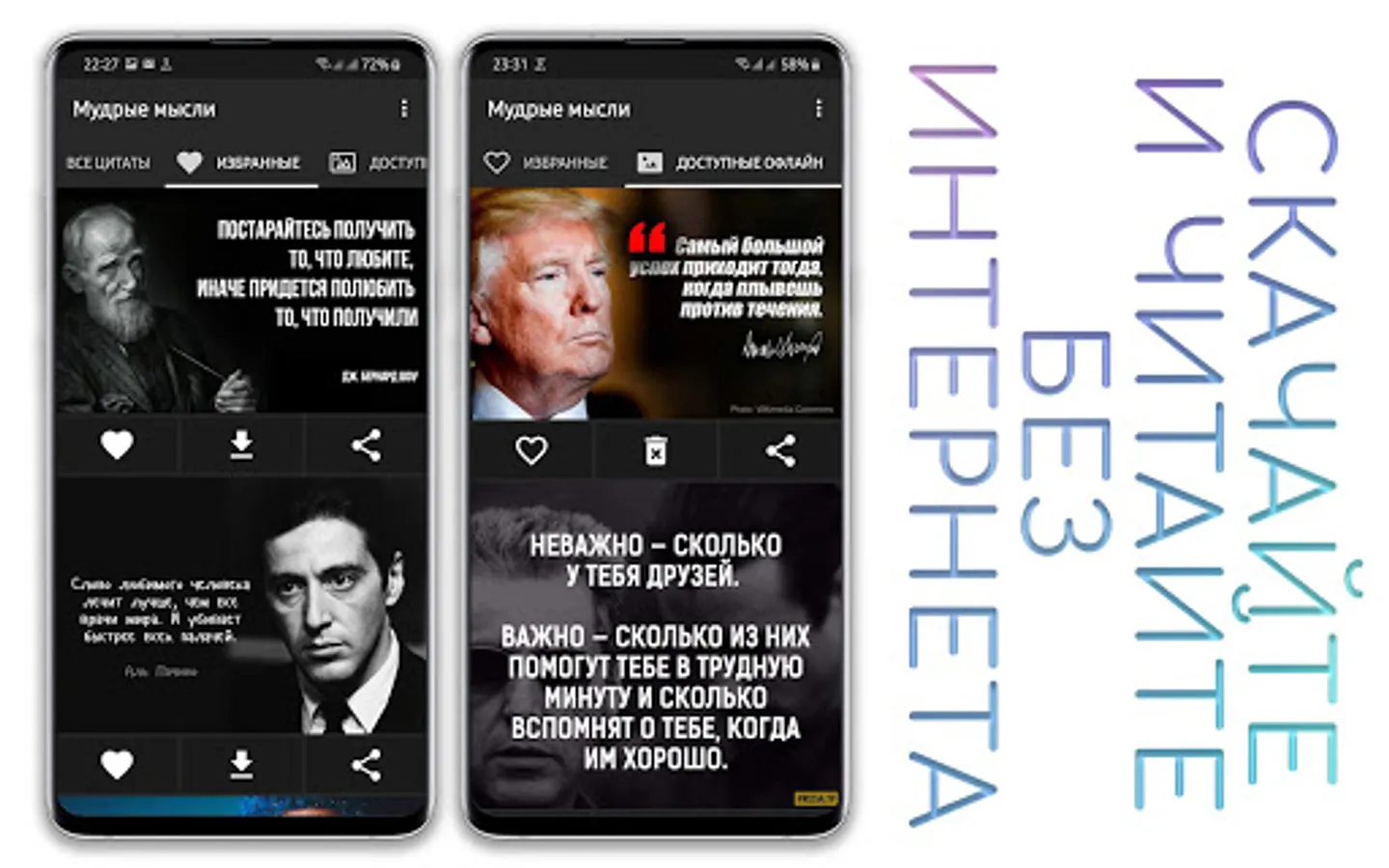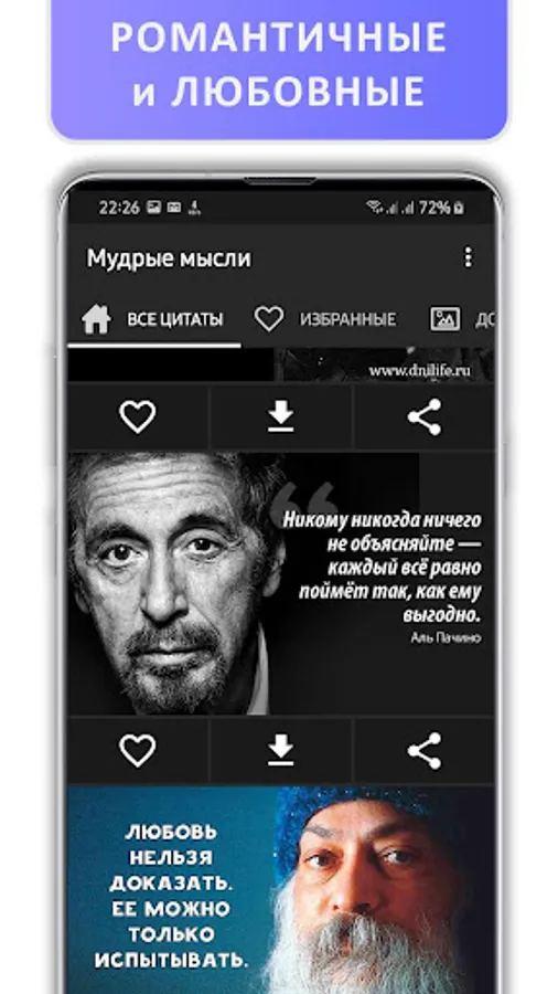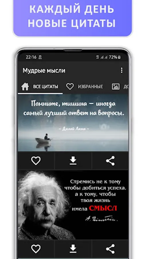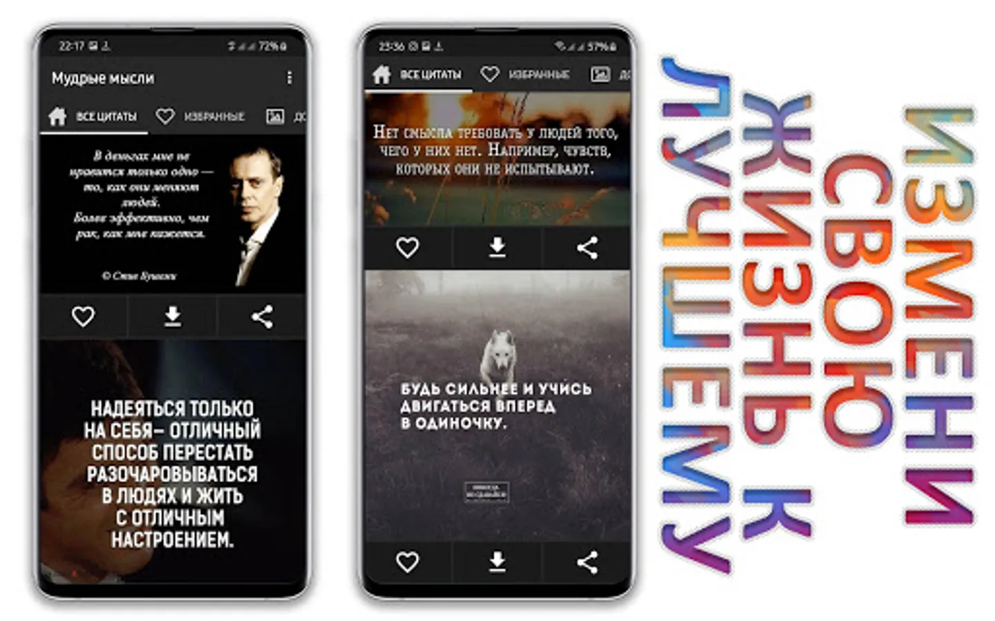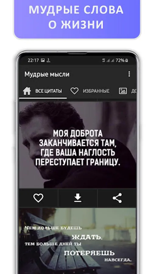 The application “Wise words and thoughts about life for every day” will help you find a solution for this situation here and now.