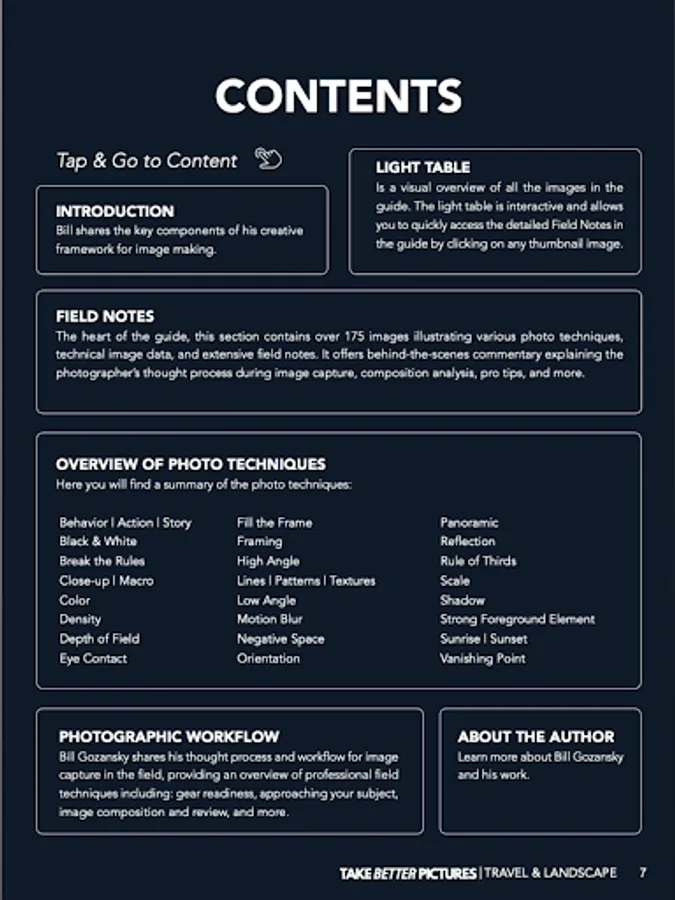 The series of professional photography guides contains rich photographic content, technical image data, and descriptive field notes. Get ready to discover a myriad of new photographic techniques and composition ideas for your photography.