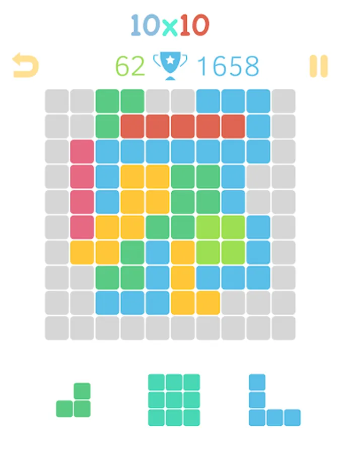 10x10 is a challenging puzzle game with a simple gameplay. Drag and drop the elements into the 10x10 board.
