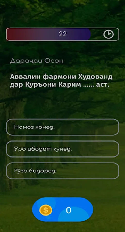 Bozii Quiz az ta'rih va bobi Qur'oni Karim. Savolҳo Az Oyotҳoi Qur'on. Va incunin yakchand savolҳo az Kitobҳoi Zabur (Torah), Inҷil (Bible). Bozii olib ast. Tavsiya Doda Meshavad.