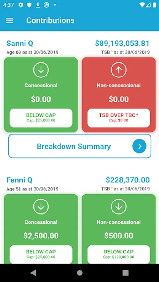Track your contributions limits and ensure your clients are maximizing avalaible tax concessions.