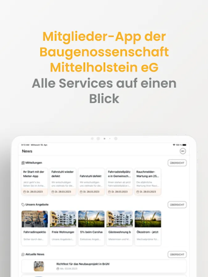 bgmPLUS - The service app of the building cooperative Mittelholstein eG