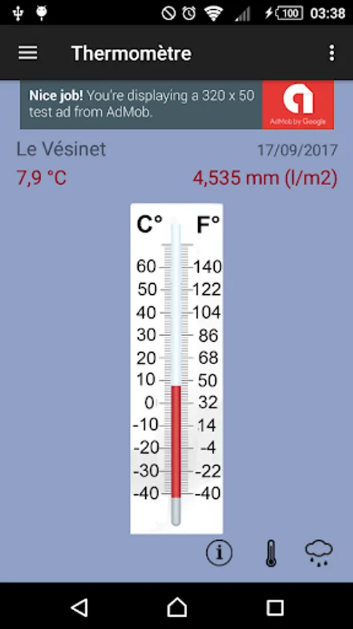 The thermometer provides temperature forecast and rain forecast for the next three days, everywhere in the planet.