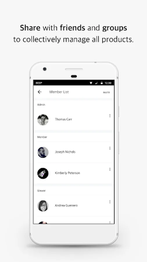 Invite your colleagues or friends to track your products together. With an e-mail address or phone number, an invitation is simple with a single click!