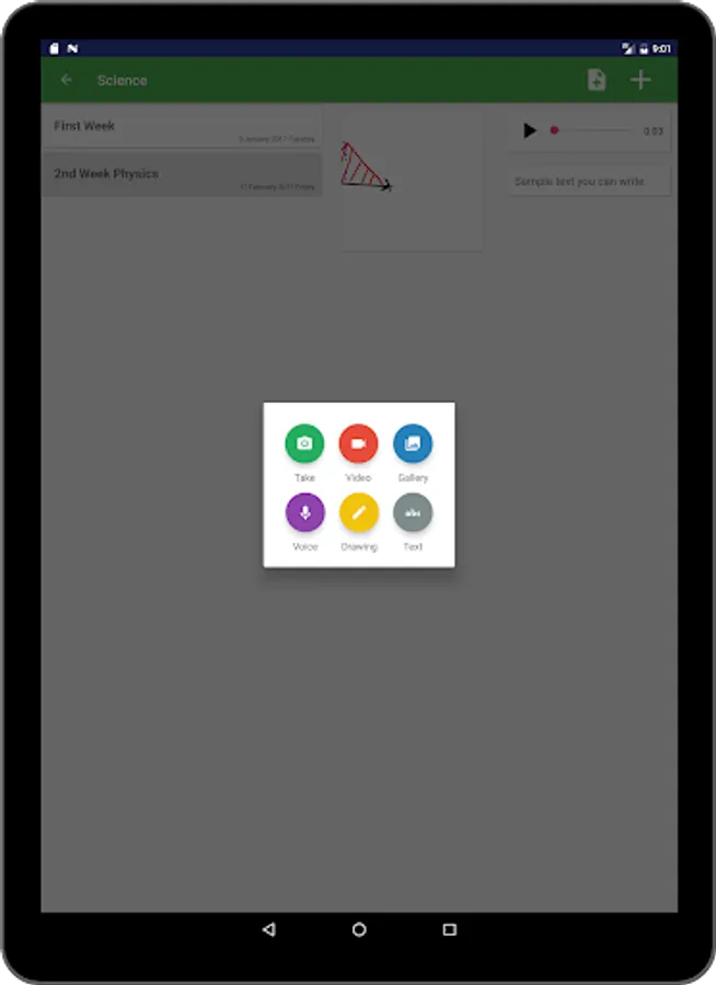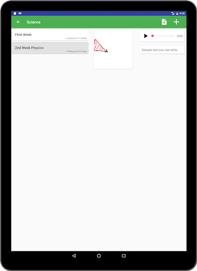 Lecture Notes Organizer designed to record regularly on your phone, tablet, photo, sound, video, drawing. Take photos of your reverse notes, make notes with your own voice, add shapes and formulas in your own hands. With this applicatiın take faster notes, keep your notes on your phone or tablet.