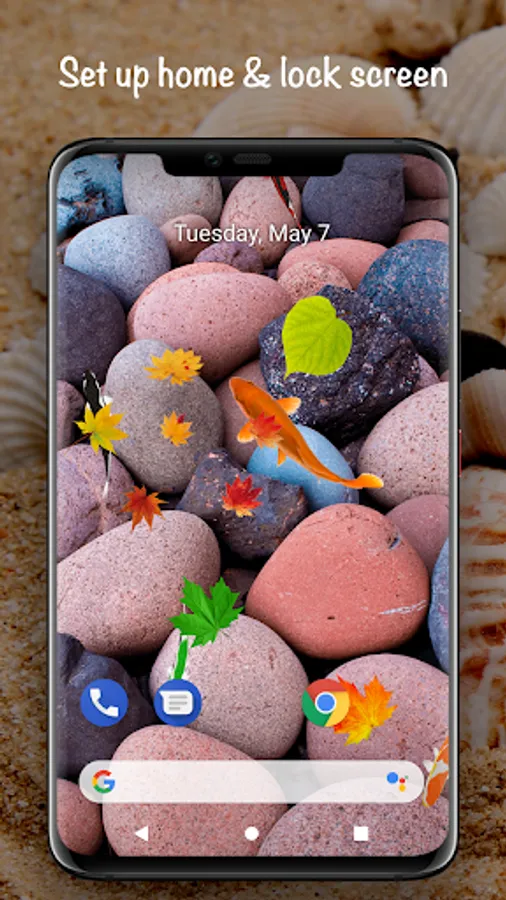 Just select the free colored wallpaper themes and set as the background. You will be amazed that live aquarium wallpaper has many fishes moving on the screen, you can touch and feel now. The fishes may be scared of you and move faster! Drop water effect and ripple make you feel that is a real aquarium.